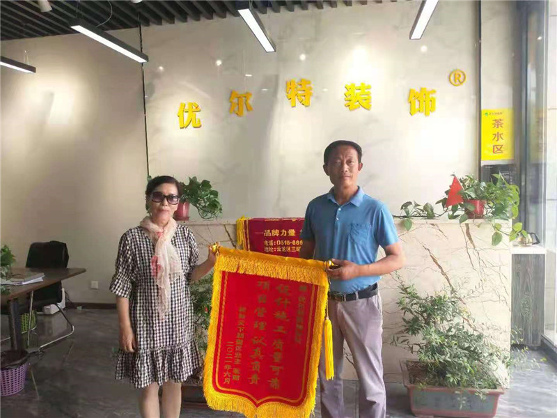 • 優爾特裝飾被工商管理局認定為“零投訴”單位,局領導親自頒發給優爾特裝飾董事長黃加忠牌匾及證書
